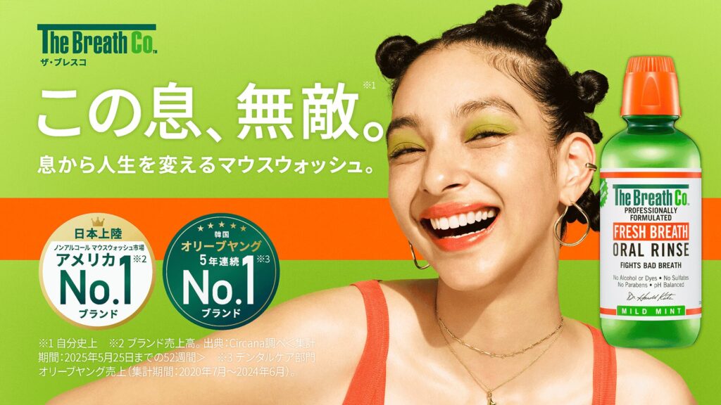 ザ・ブレスコはアメリカの歯科医であるハロルド・カッツ氏によって開発されたブランドです。1993年の発売以来、アメリカのノンアルコールマウスウォッシュ市場においてNo.1を取得。また、韓国のヘルス&ビューティーストア「オリーブヤング」では、デンタルケア部門で5年連続No.1を達成。