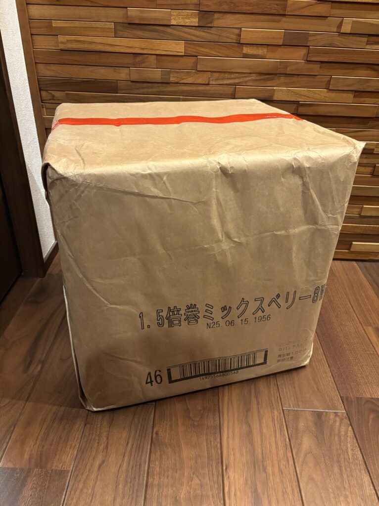 想像よりもかなり大きいのでびっくりしましたが、考えてみれば64ロールあるのでこの大きさは妥当ですね。