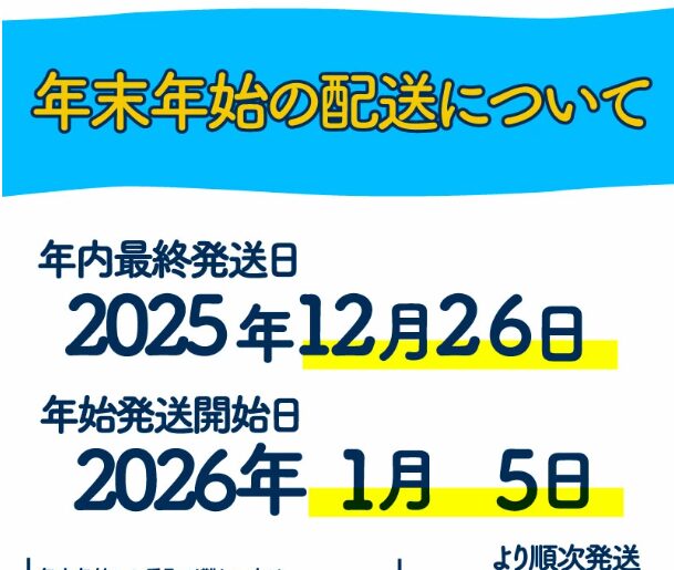 また、年末年始の配送についてですが、